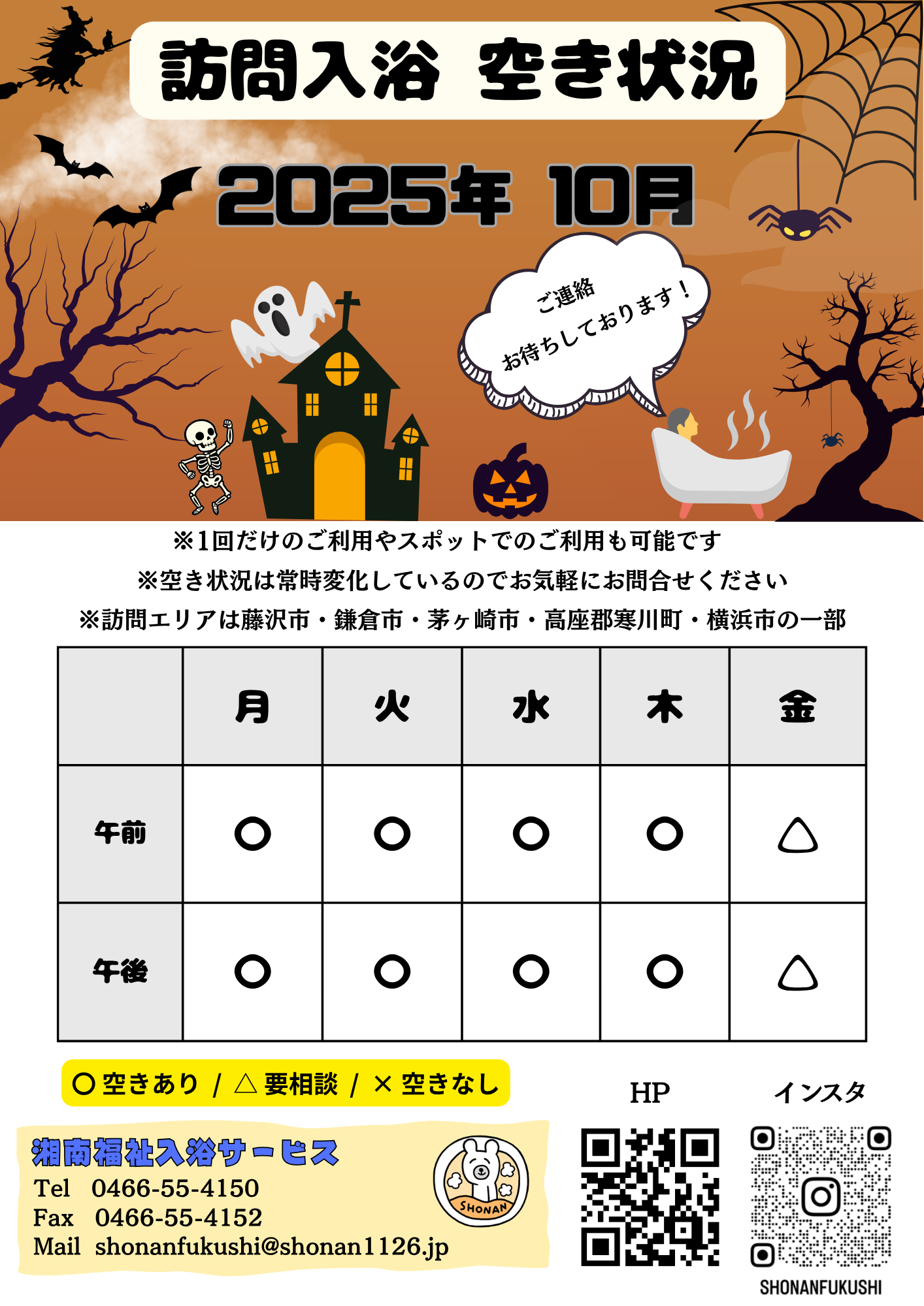 ②友達追加後にトーク画面の下の『訪問入浴空き状況』をタップ